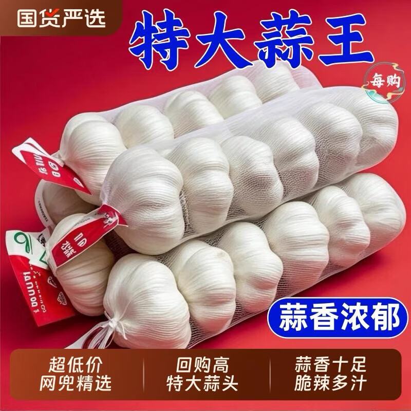 山东金乡蒜大蒜出口标准精选大蒜头蔬菜调料单果5cm 出口标准网兜装箱 460g,仅售7.01元!