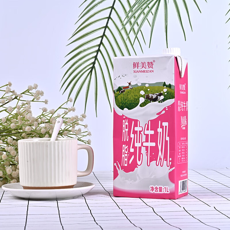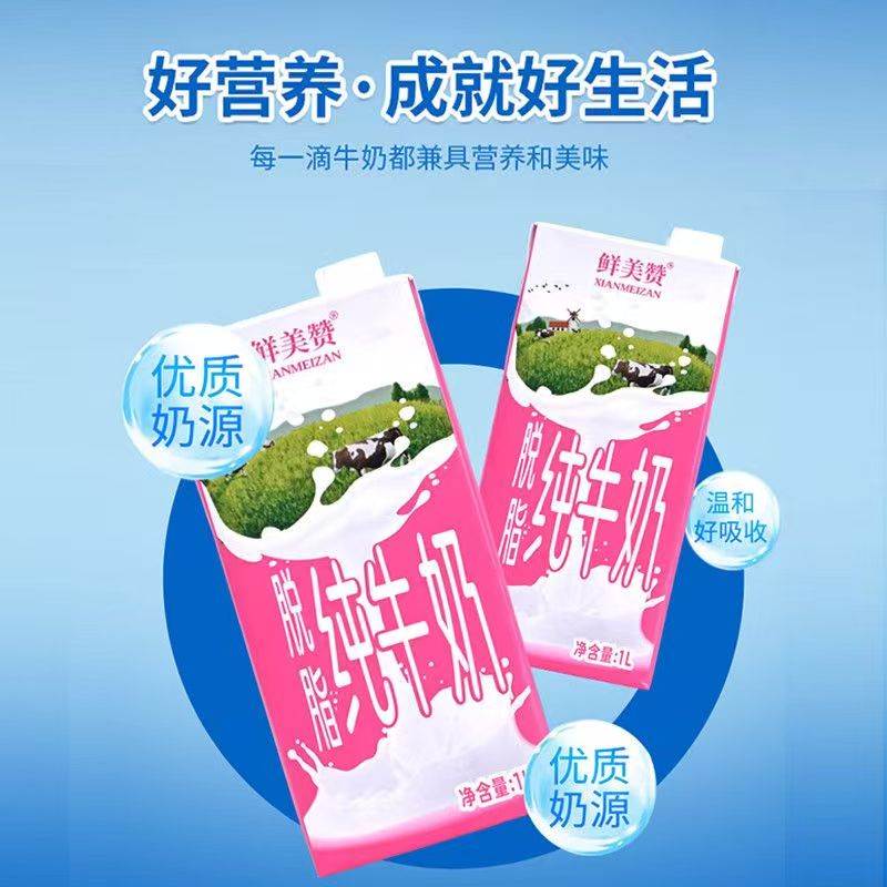 鲜美赞脱脂纯牛奶 1L,专为注重健康的你设计!