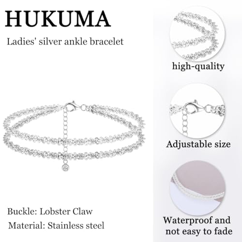 Discover the HUKUMA double-layer ankle chain for women, a delicate water-resistant bracelet. See specs & gallery.