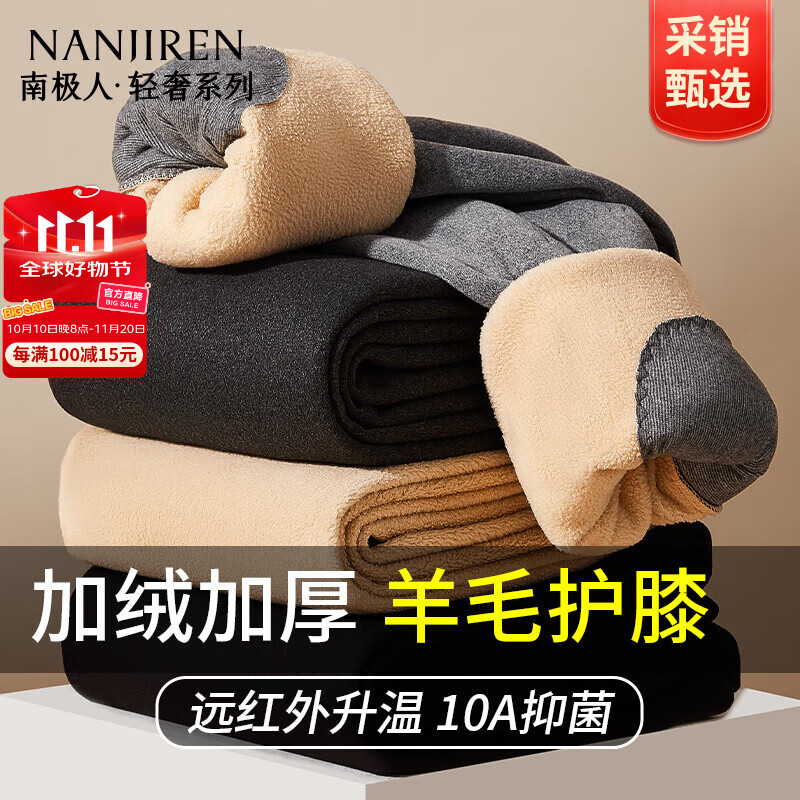 南极人保暖裤男士双层护膝贴片加厚打底裤