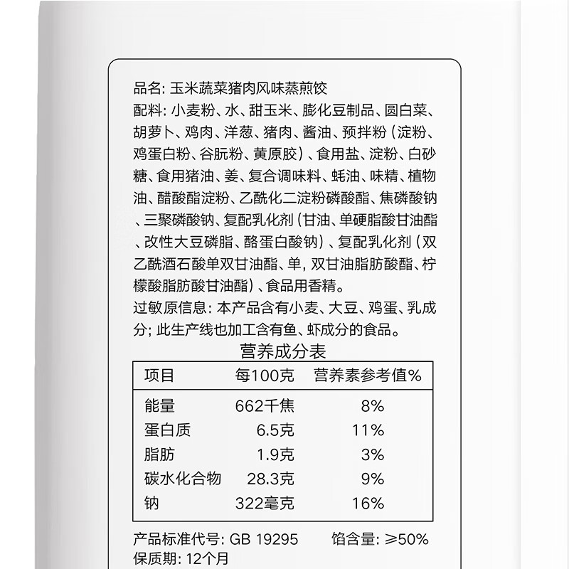 思念玉米蔬菜猪肉蒸煎饺 59.9元