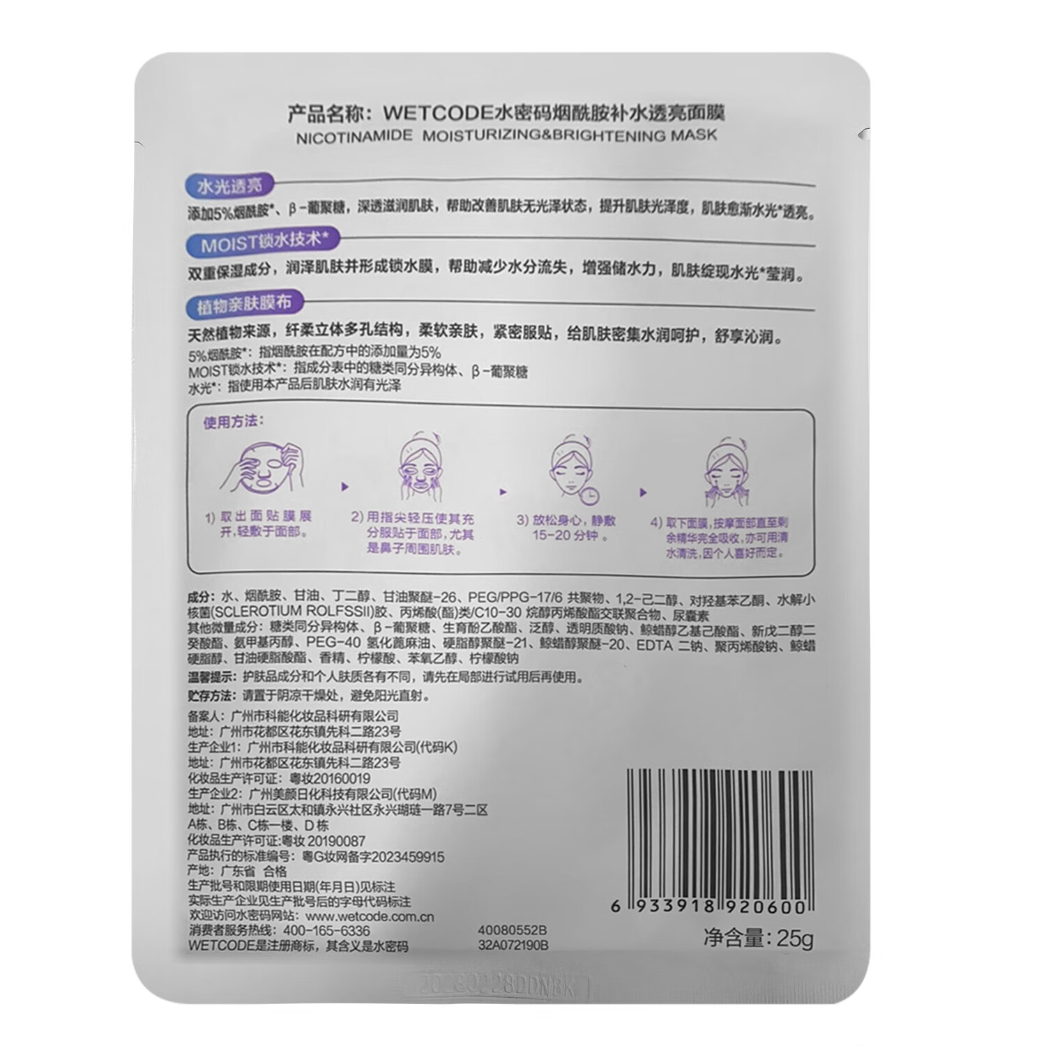 水密码烟酰胺补水透亮面膜:25g*1片