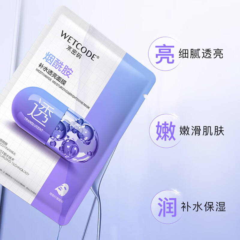 水密码烟酰胺补水透亮面膜,仅需9.9元,提亮肤色、改善暗沉!