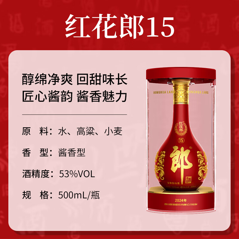郎酒红花郎15 白酒 酱酒 优惠价702元郎酒红花郎15 白酒 酱酒,优惠价仅需702元。自营业务保证正品,好评率高达98%,适合各种场合饮用与收藏。 buy2025年10月12日京东优选 产品详情 郎酒红花郎15 白酒 酱酒,53度的完美呈现! 这款白酒采用传统工艺酿造,具有独特的酱香风味。它不仅适合日常饮用,也是婚宴、庆典及节假日庆祝的理想选择。目前我们提供优惠价格702元,相比原价739元更加实惠。 此外,该产品自营业务保证正品,拥有超过50,000条的好评记录和高达98%的好评率。这些社会证明充分体现了消费者对其品质的认可与喜爱。 产品详情 Share this content: 标签# 好物推荐# 热销产品# 食品酒水 buy 文章: 36139 上一页 文章 Shimmer Highlight Powder - Beauty Searcher 下一页 文章 海信大圣G5 Pro+电竞显示器仅1299元