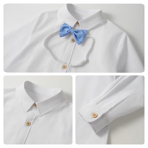 The LOLANTA Boy’s Wedding Suit Set is a stylish option designed to make your child look smart and comfortable during weddings or other formal events. This set includes a jacket, vest, pants, and bow tie, all crafted from breathable and soft materials.
