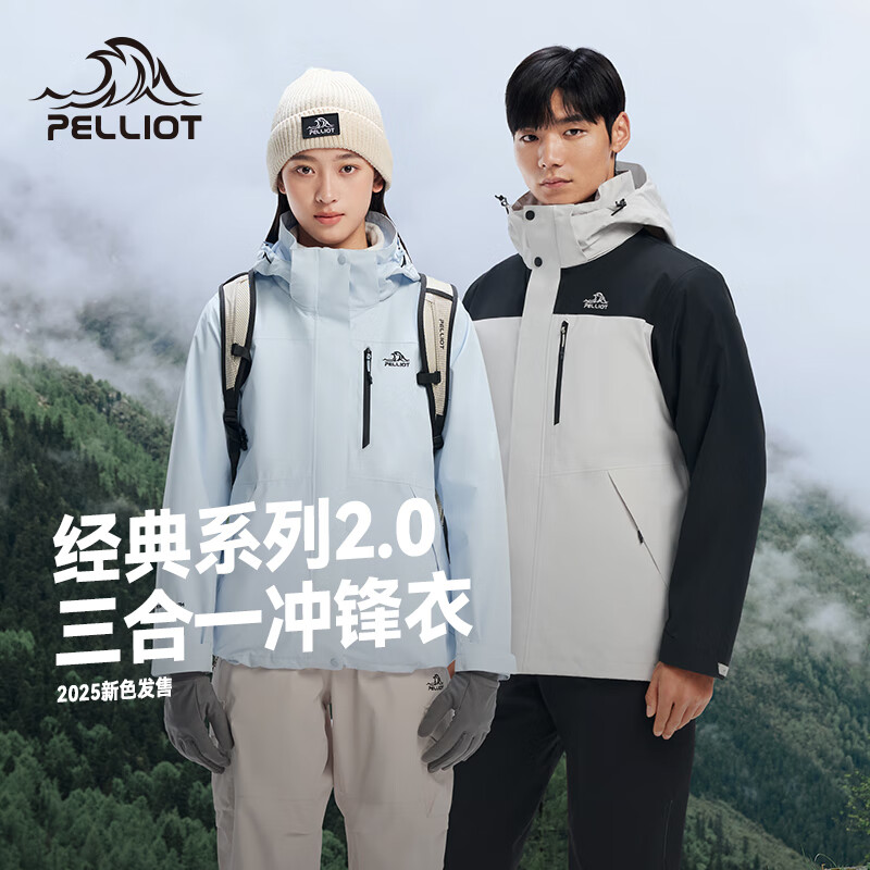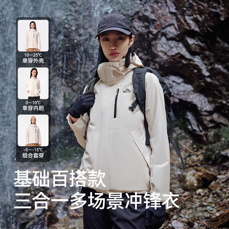 伯希和(Pelliot)【成毅同款】山野2.0冲锋衣男三合一抓绒内胆防风防水硬壳外套 [女款]冰岛蓝 |两件套(新色发售) M 女102-114斤男116-130