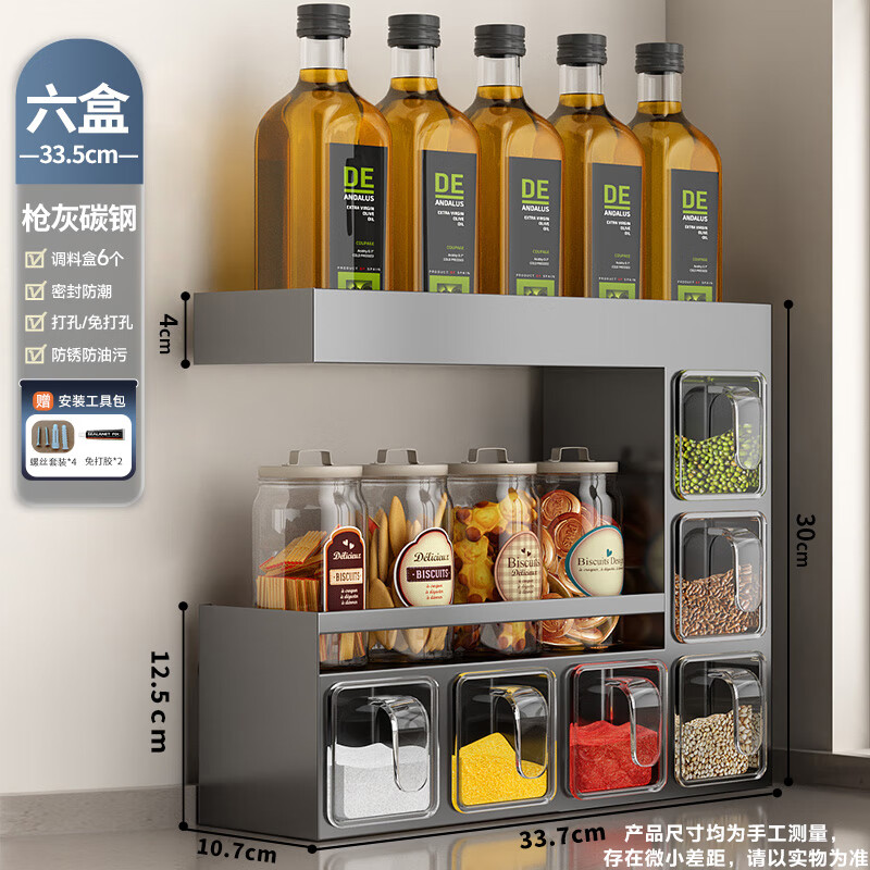 - 多层收纳:6个独立调料盒,轻松分类不同调味品,满足您的各种需求!