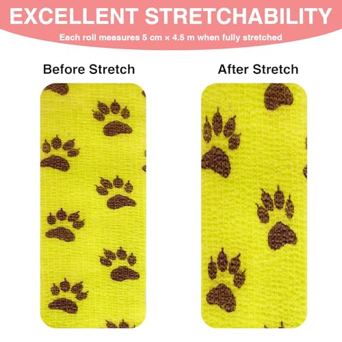 - Elastic and Self-Adhesive: The elastic bandage (5 cm wide) adheres only to itself without sticking to the pet’s fur or skin. It stretches up to 4.5 meters for flexible use.