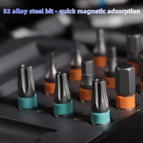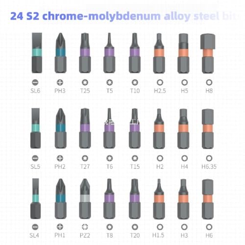 - Wide Range of Bits: Includes 24 magnetic S2 alloy steel bits with color-coded rings for easy identification.