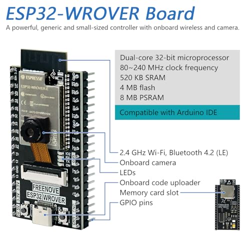 The Freenove ESP32 CAM Basic Starter Kit offers dual-core microcontroller and onboard camera with Python C code. See specs & gallery.