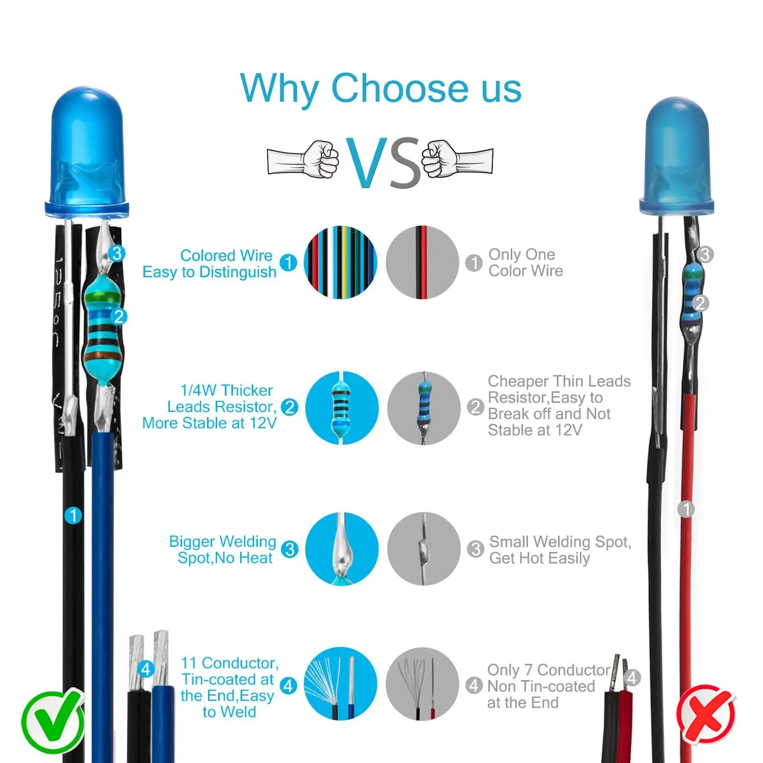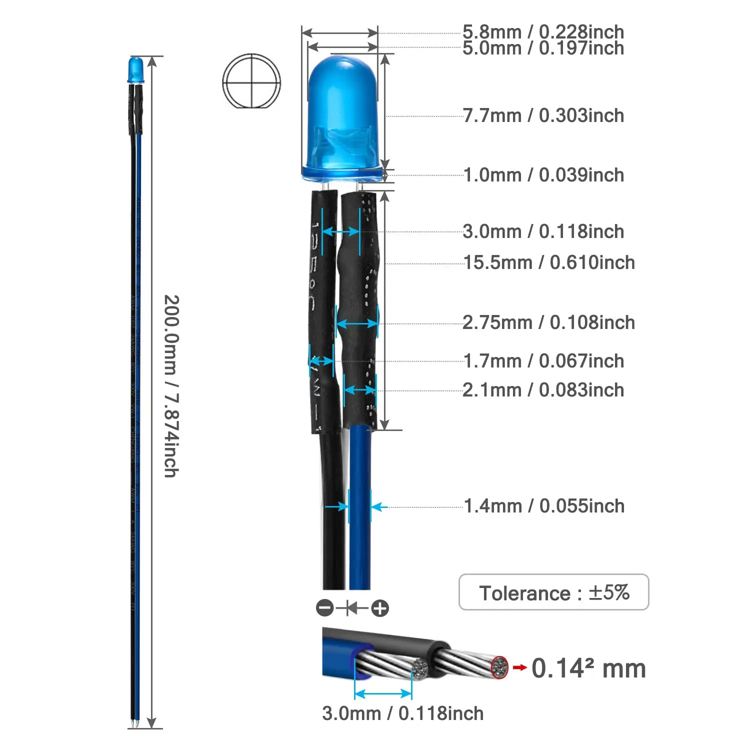 • Bright and Durable: With a diameter of 5mm and an overall length of 7.9 inches, these LEDs emit strong light with long-lasting durability.