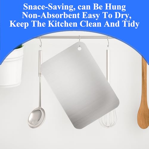 The QOOSIKICC Titanium Cutting Board is a high-quality kitchen essential designed with durability and convenience in mind. Made from premium stainless steel, this double-sided cutting board offers robust performance and ease of use.