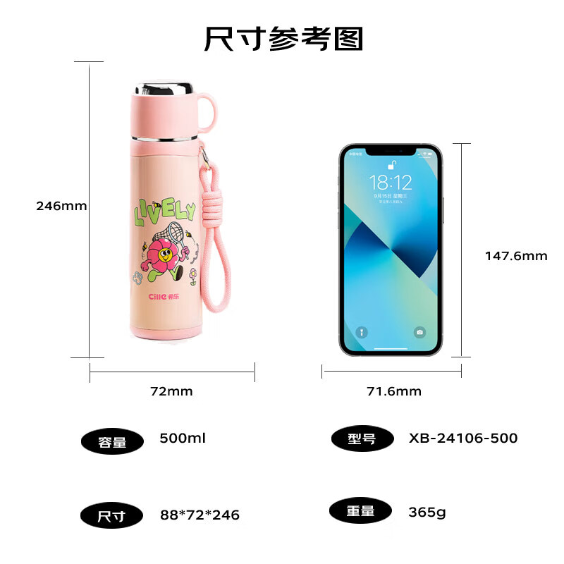 **希乐316不锈钢保温杯,全新升级版本正式登场!作为一款适用于全天候使用的高品质保温保冷杯,它不仅具备500ml的大容量设计,满足各种场合的饮水需求,还特别采用了食品级不锈钢材质,健康安全更安心。无论办公室、户外还是旅行中,这款杯子都能成为您贴心的好伴侣。
