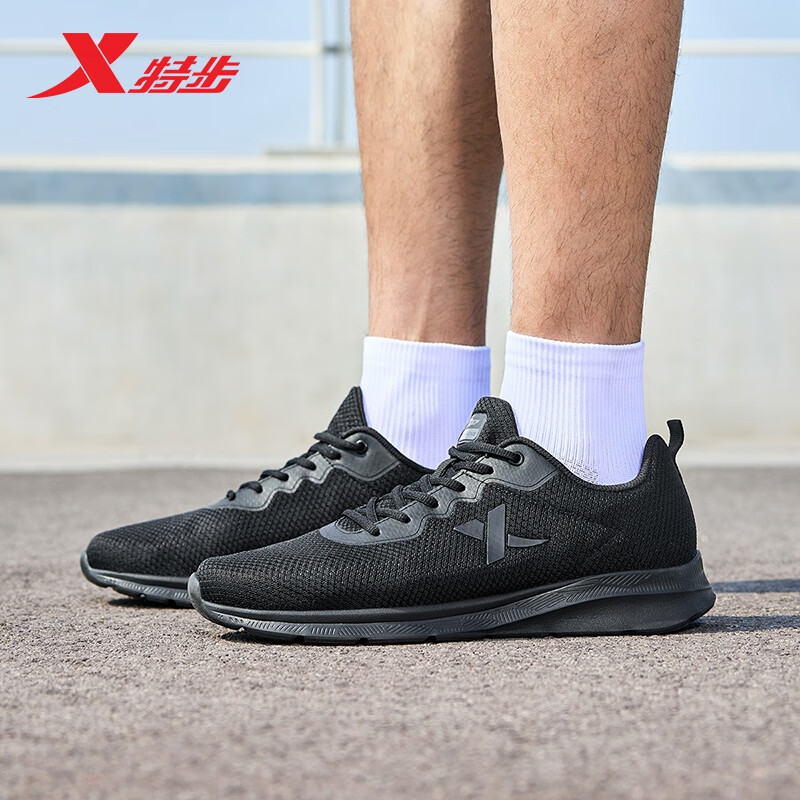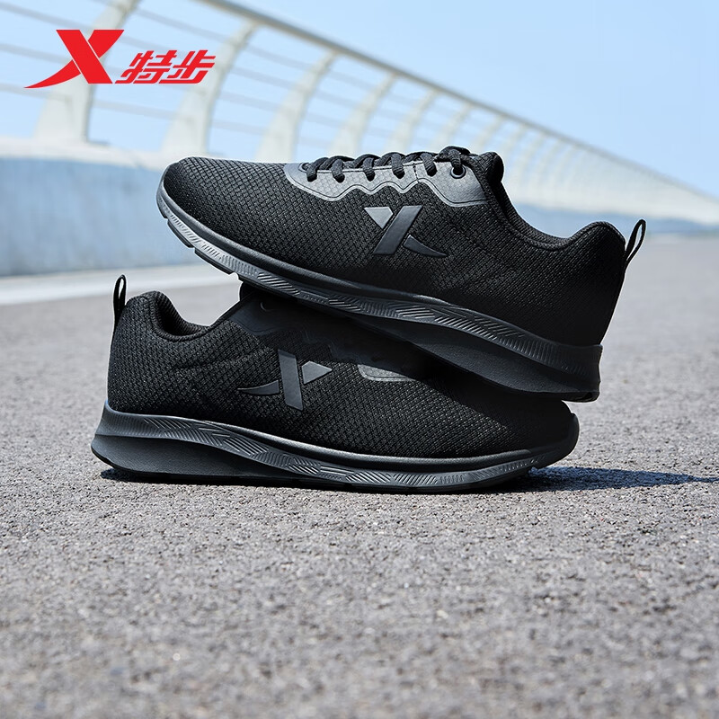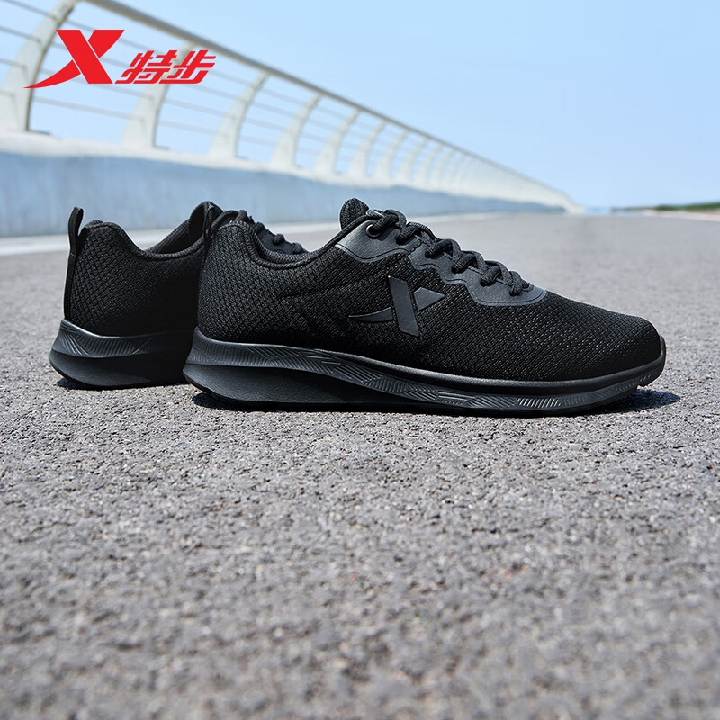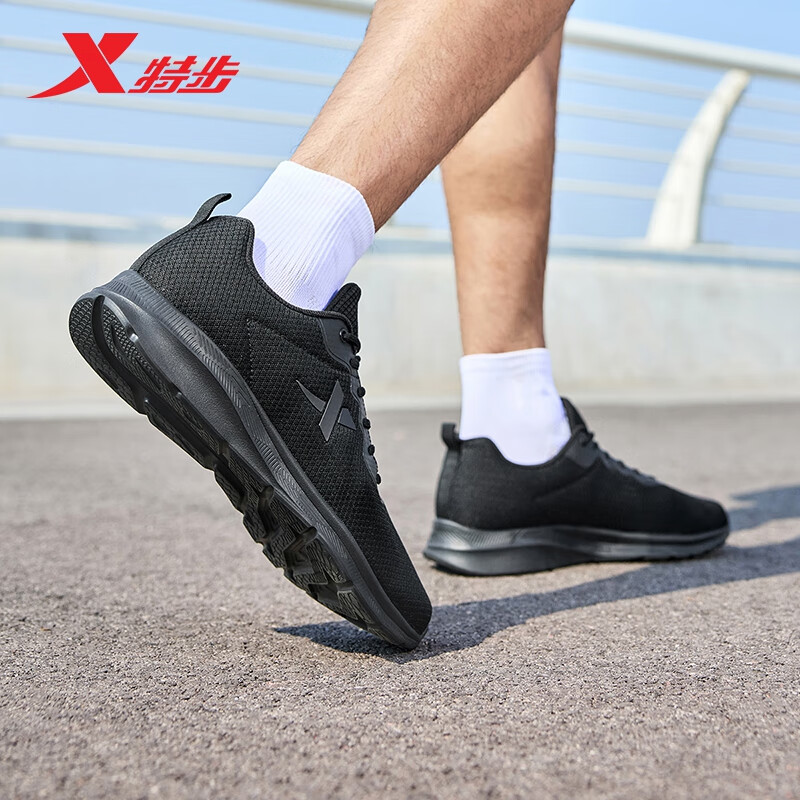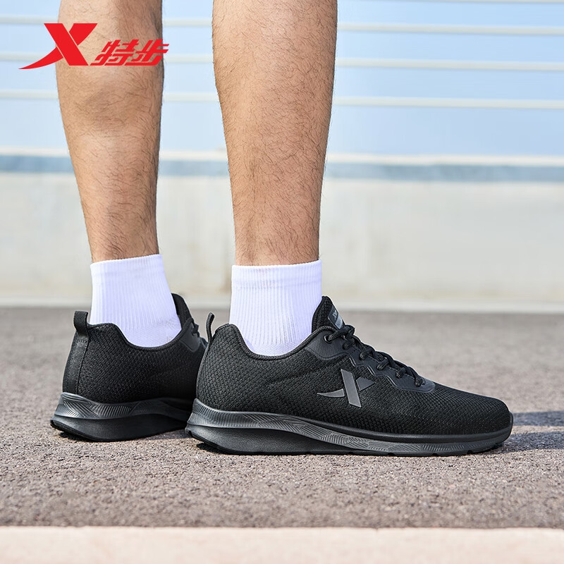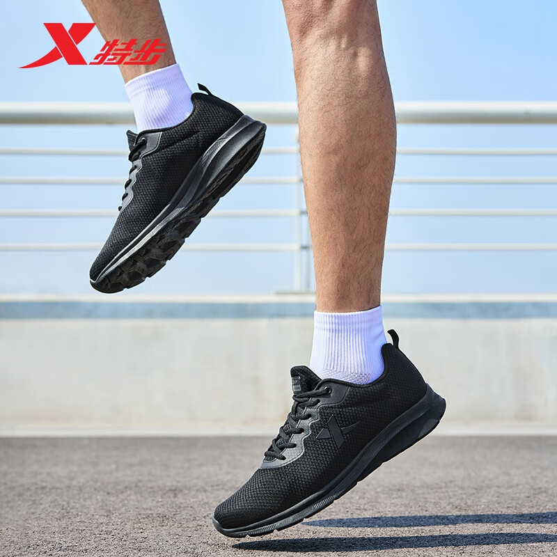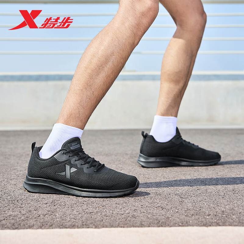 特步运动鞋男跑步鞋秋季网面透气轻便减震正品男子跑鞋休闲鞋子黑色