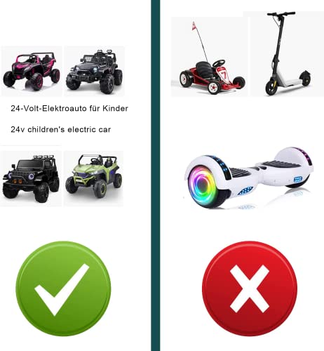 - Universal compatibility: Suitable for a variety of electric ride-on toys from different manufacturers as long as they accept 24V power input.
