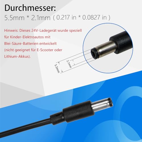 - High current output: Provides a steady charge with an output of 800 mA at 24V to quickly top up your child’s toy battery.