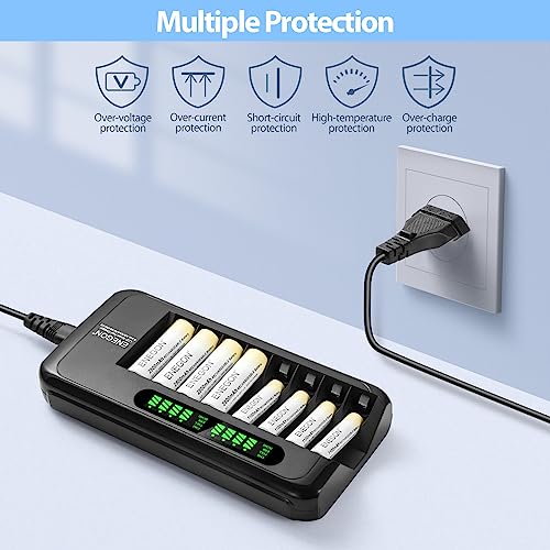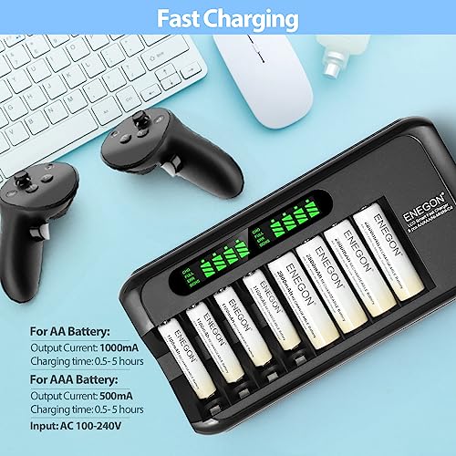 - Model: ENEGON Cargador de Pilas Recargables Rápido Con Adaptador de CA y Pantalla LCD Inteligente – 8 Ranuras Independientes Para AA AAA NI-MH NI-CD