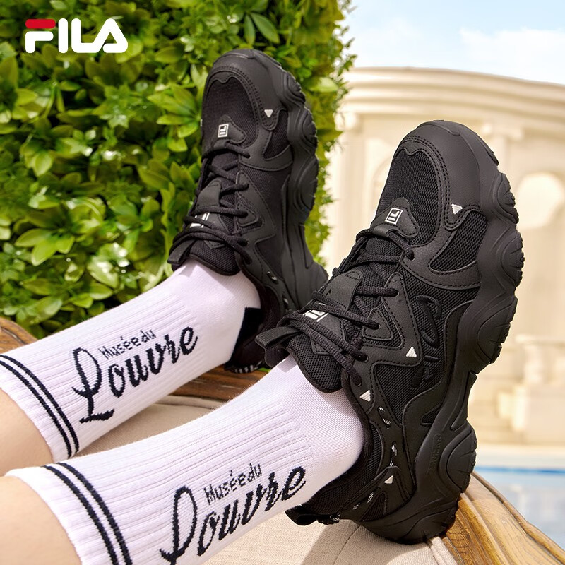 [FILA斐乐猫爪鞋女休闲复古厚底运动鞋]是一款时尚又舒适的鞋子,适合各种场合穿着。四代版本采用黑色设计,经典百搭,无论你是搭配休闲装还是商务正装都能完美适配。