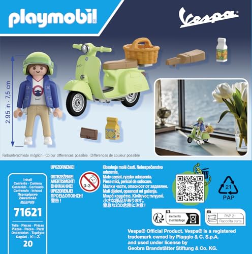 The PLAYMOBIL Vintage Vespa Model 71621 is a delightful collectible for Vespa enthusiasts, offering a nostalgic glimpse into the vibrant era of 1960s Italian design. With detailed customization options and a variety of accessories included, this model provides endless fun and creative play possibilities.