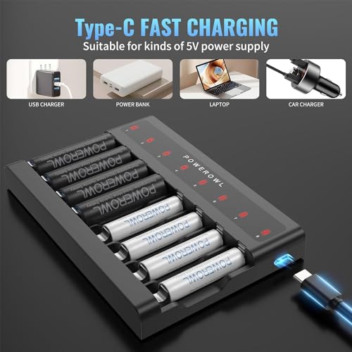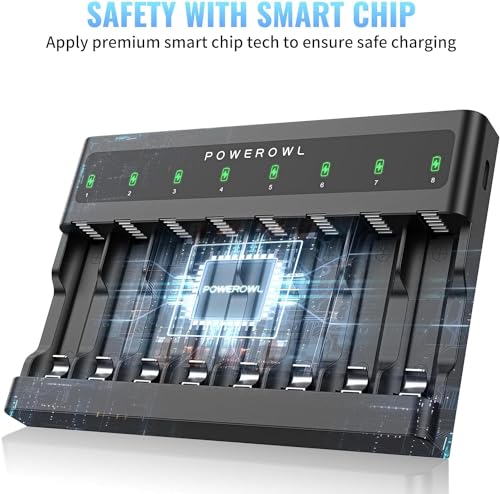 POWEROWL’s 8-slot battery charger is a must-have for anyone looking to efficiently manage their rechargeable battery needs. With its sleek design and user-friendly features, this charger offers a convenient way to keep your batteries powered up without any hassle.