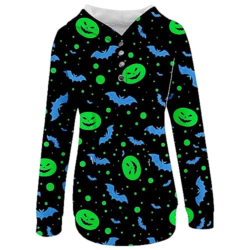 - Model: Women Halloween Oversized Hooded Ladies Halloween Pumpkin Bat Print Fashion Casual Long Sleeve Button Drawstring Hoodie