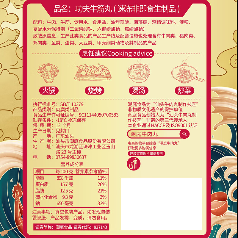 潮庭 潮汕功夫牛筋丸250g 牛肉+牛筋含量90%, 现在仅售43.7元。这是一款深受消费者喜爱的火锅必备食材,每一份都富含90%以上的牛肉和牛筋成分,口感鲜美,回味无穷。