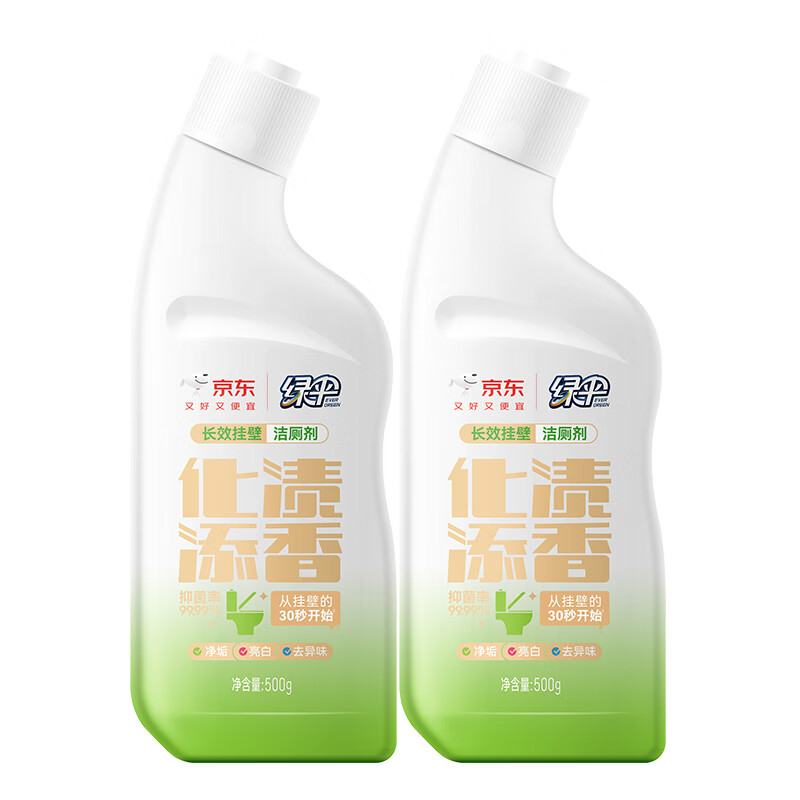 绿伞长效挂壁洁厕灵香氛变色免刷洗卫浴马桶清洁剂500g×2瓶是一款高效、便捷的马桶清洁神器,原价可达数十元但现仅售 29.9元。该产品具有以下特点: