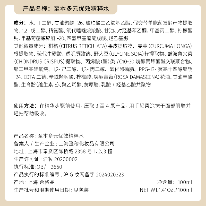 至本新版多元优效精粹水100ml – 抗氧抗糖清爽保湿提亮维稳补水爽肤水