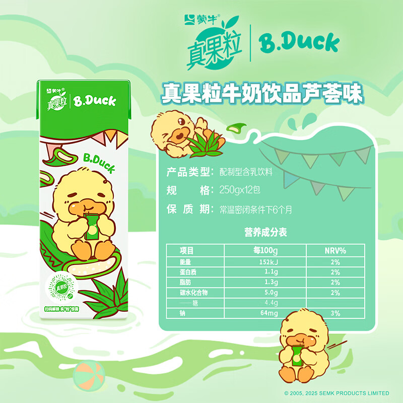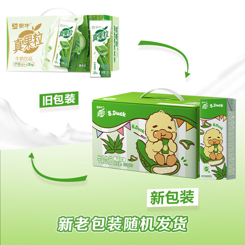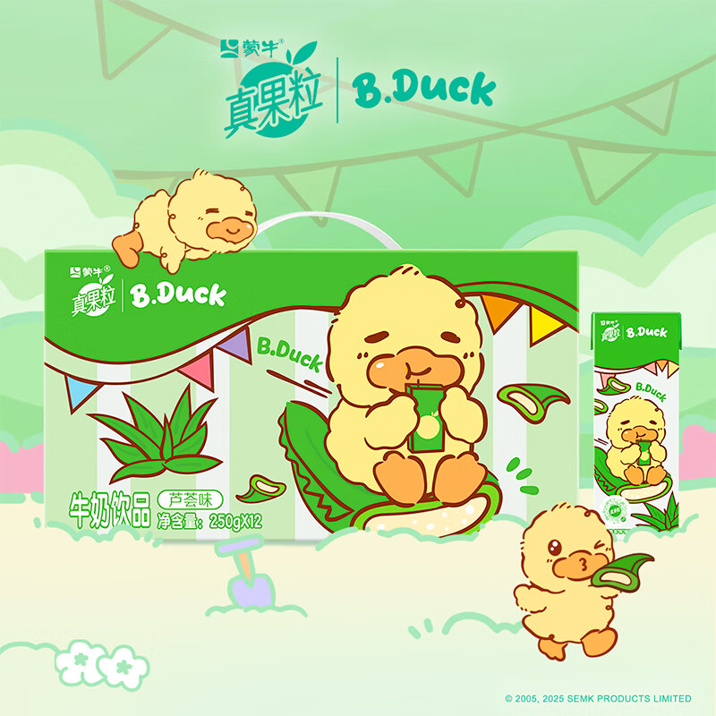 蒙牛真果粒芦荟粒250g*12盒,小黄鸭IP定制装,特别的礼盒设计让其不仅是一款美味的饮品,更是送礼佳品。每一份都是精心挑选的原材料,确保了产品的高品质和纯正口感。