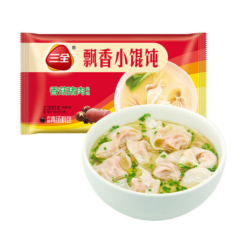 三全中式早餐半成品 香菇猪肉飘香小馄饨300g36只,现在仅售 16.99 元! 这款速冻食品在保留传统风味的同时,更注重便捷性和卫生性。产品包含:原味手抓饼、灌汤包、小笼包、牛肉大葱猪肉馅饼等多种中式经典早餐选择。