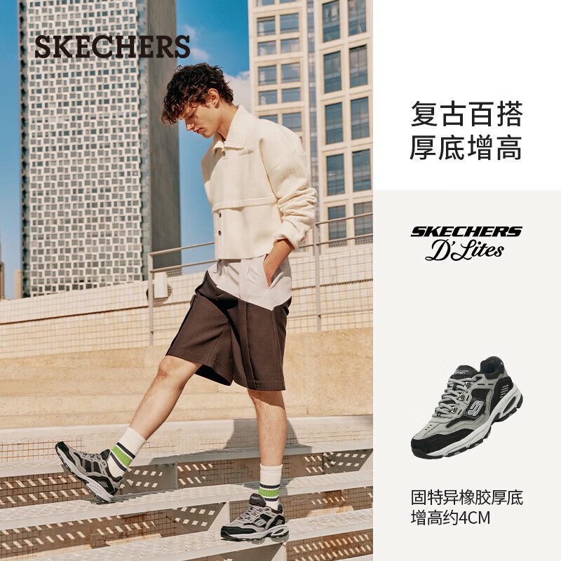 斯凯奇(Skechers)男鞋秋季厚底老爹鞋休闲熊猫鞋软底运动鞋237067