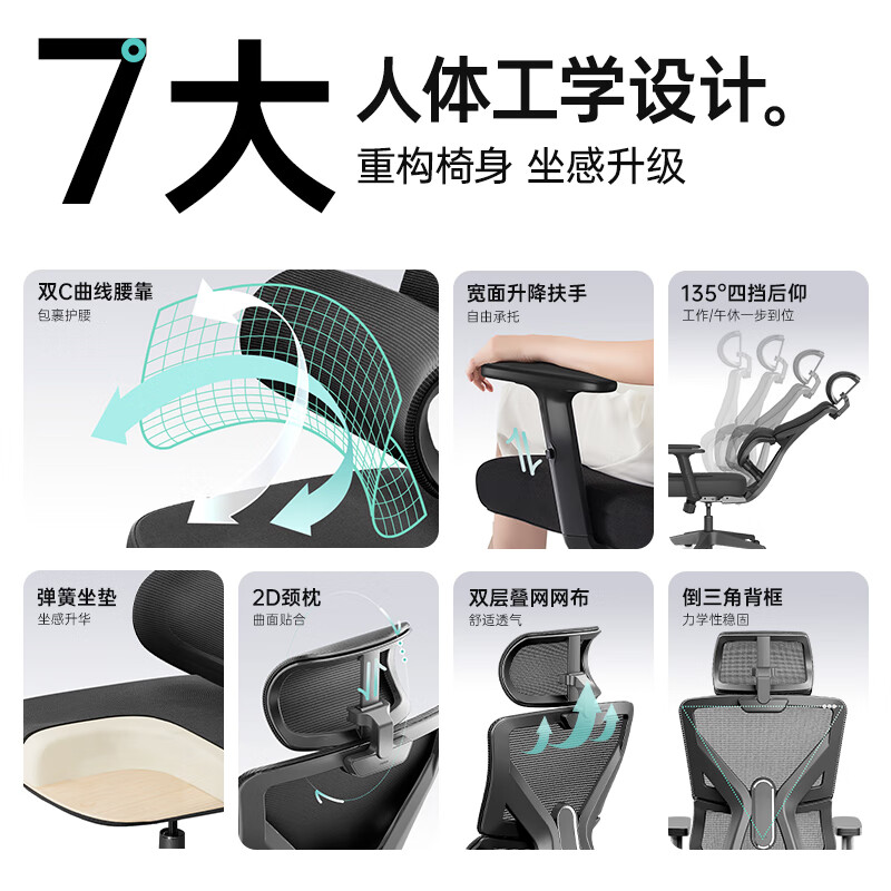 黑白调P5双背-Ultra人体工学椅,仅售699元!