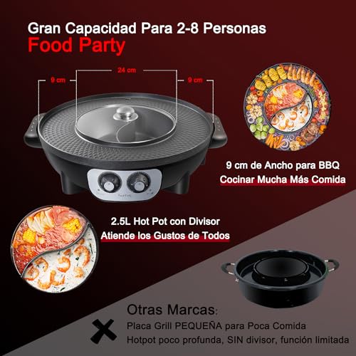 The Food Party Electric Hot Pot and Grill is an innovative kitchen gadget designed to cater to all your cooking needs, whether it’s a Chinese hot pot or a Korean barbecue party. This 2-in-1 appliance offers exceptional versatility and convenience for hosting gatherings of up to eight people.