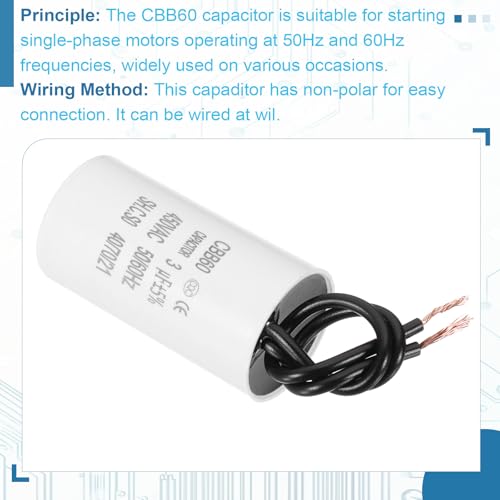 The PATIKIL CBB60 Capacitor is a compact, efficient solution designed to enhance the performance of monophonic motors operating at 50Hz/60Hz frequencies. This capacitor ensures stable operation under high temperatures and offers reliable insulation for heavy loads.