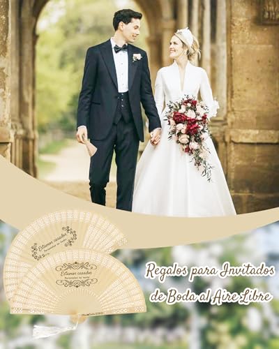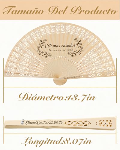 Customize your wedding ceremony or event with these personalized hand fans from zyinoant. Crafted in high-quality sandalwood, they come with options to personalize each fan with names and special dates.