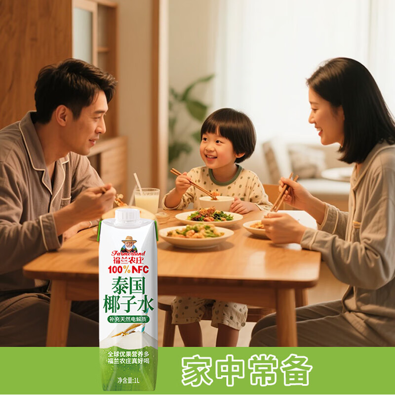 福兰农庄的泰国椰子水仅售15.9元,富含天然电解质和NFC果汁,适合日常饮用或运动后补充能量。