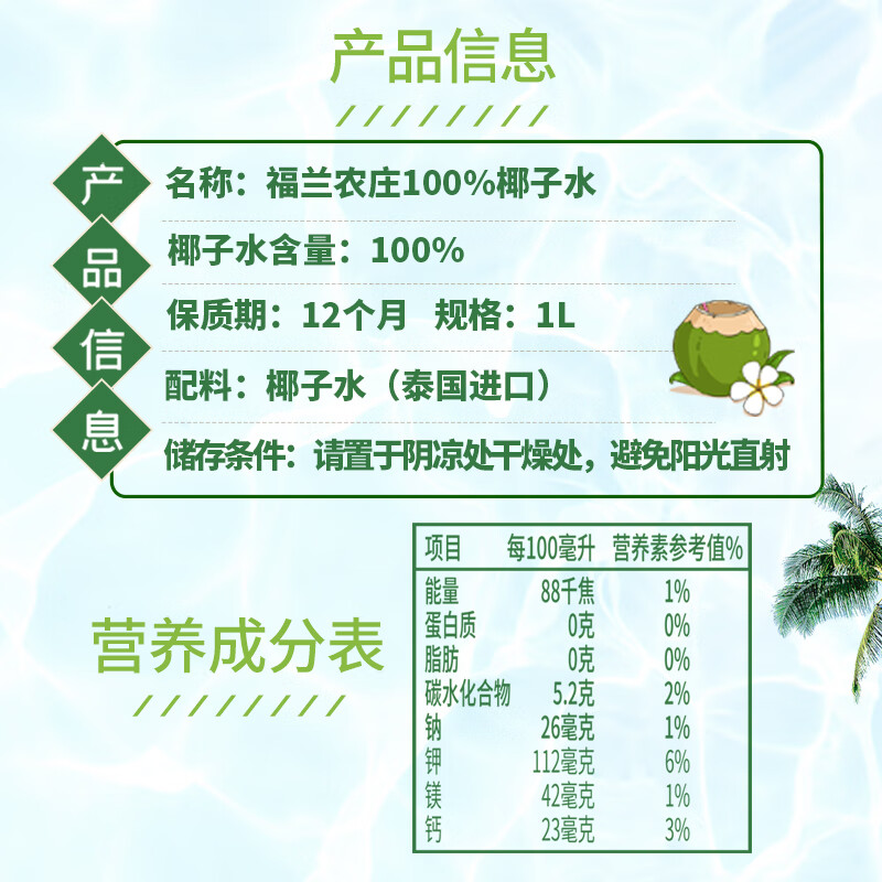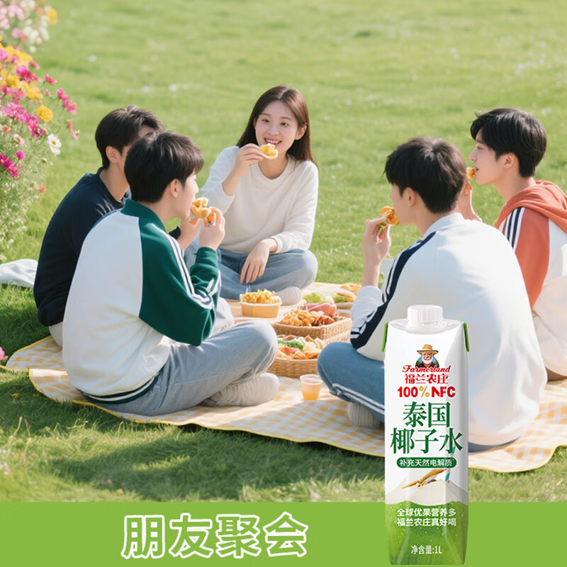 福兰农庄FARMERLAND 100%泰国椰子水1L装富含天然电解质NFC果汁天然椰子水