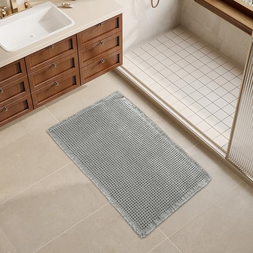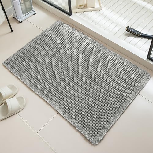 Experience the perfect blend of comfort and practicality with this waffle-textured bath mat. Designed to absorb water quickly and maintain a safe grip on wet floors, it’s an essential addition for any bathroom.