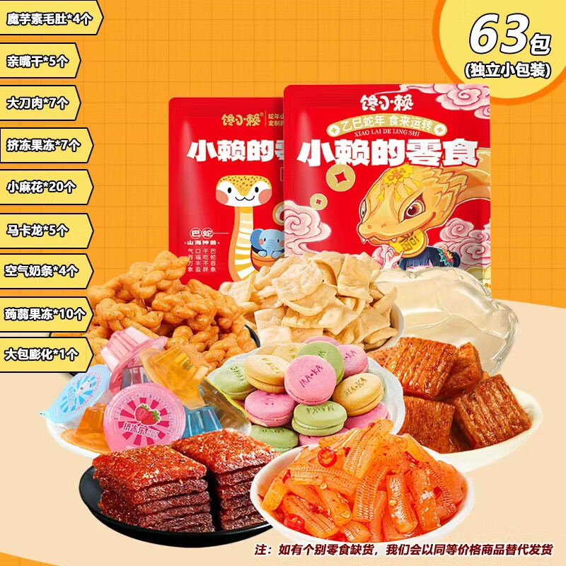 【零食大礼包】休闲零食辣条麻花肉脯素牛排组合装,绝对是追剧、聚会的最佳选择!本款零食大礼包内含7种口味,共63包的丰富配置让你尽享美味的同时还能享受到惊人的价格优惠——仅需7.01元!这个价格不仅包含了所有丰富的零食,而且保证了品质与新鲜。
