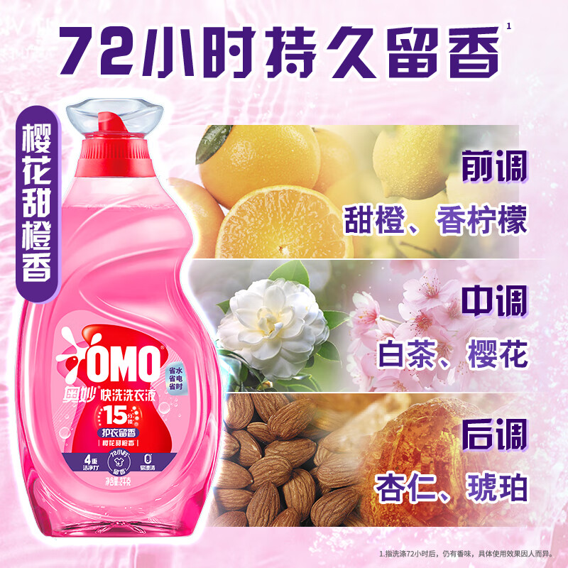 奥妙洗衣液樱花甜橙香,4斤大容量。只需59.9元,享受15分钟速净护色洁净体验,好评如潮!