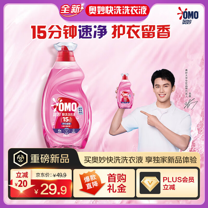 奥妙【吴磊推荐】快洗洗衣液樱花甜橙香,4斤大容量装,享受15分钟速净护色清洁体验。
