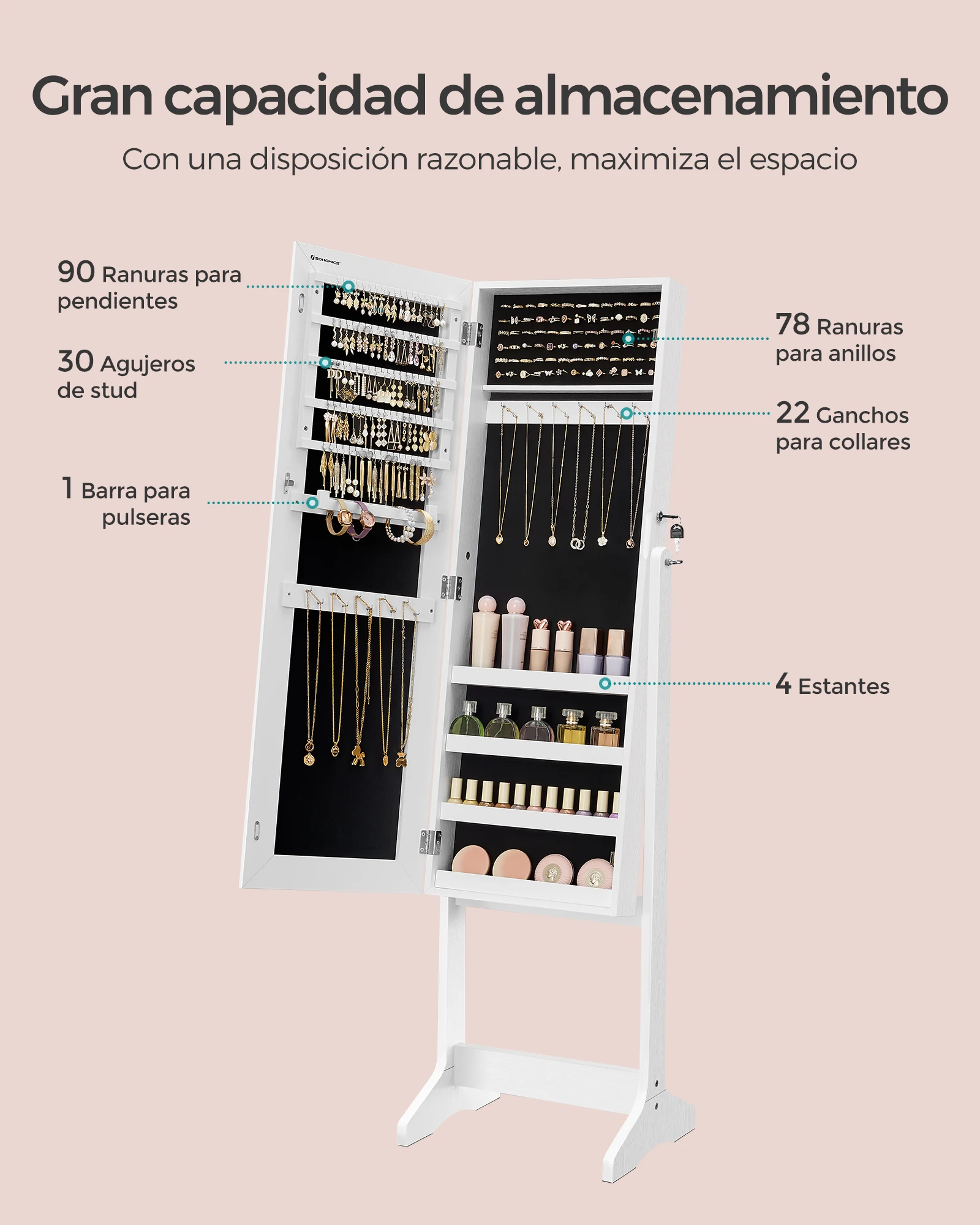 - Full-Length Mirror: The main feature of the Songmics jewelry box mirror is its full-length mirror, allowing you to admire your outfit from head-to-toe while getting ready for any occasion.