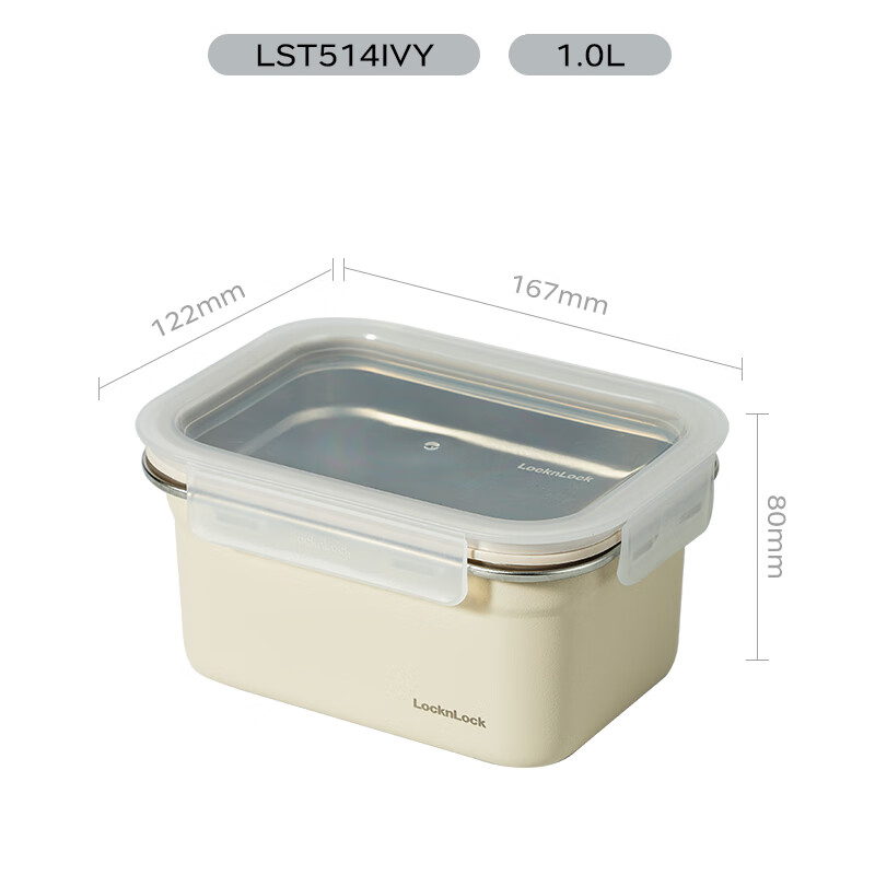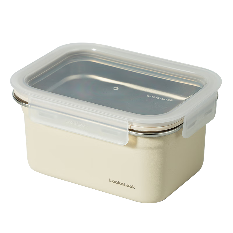 乐扣乐扣(LOCK&LOCK)不锈钢保鲜盒密封冰箱厨房储存收纳盒水果学生带饭餐盒1L 米色