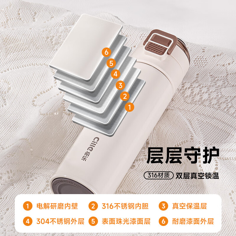 希乐的这款保温杯采用优质316不锈钢材质,不仅安全健康,还具备出色的保温保冷性能。无论是冬季热饮还是夏季冰镇饮料,都能提供持久保鲜的效果。