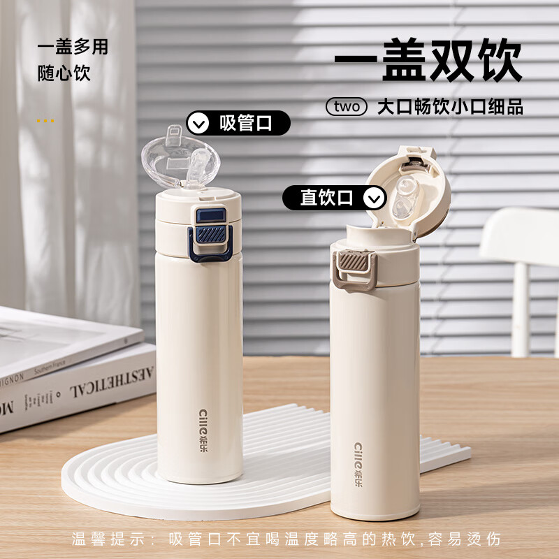 希乐保温杯大容量316不锈钢水杯男女学生便携双饮杯户外吸管杯