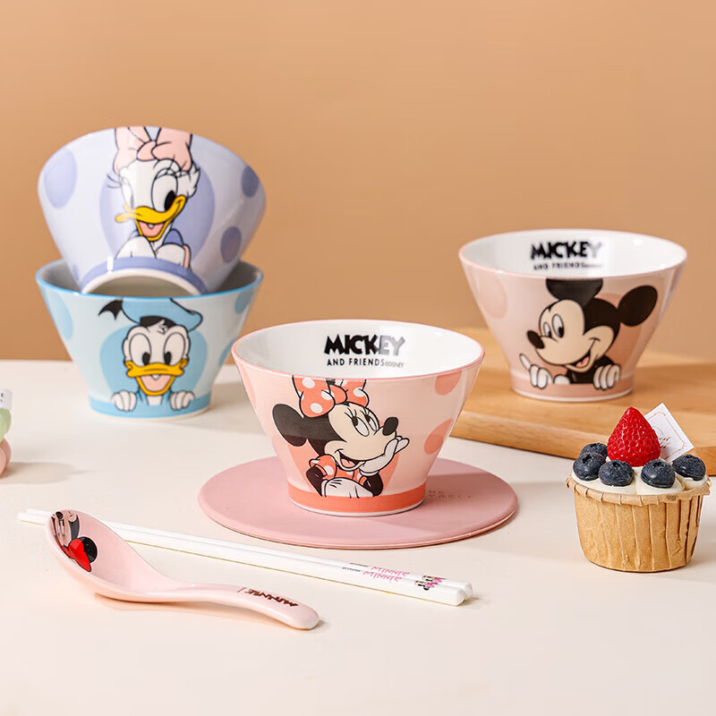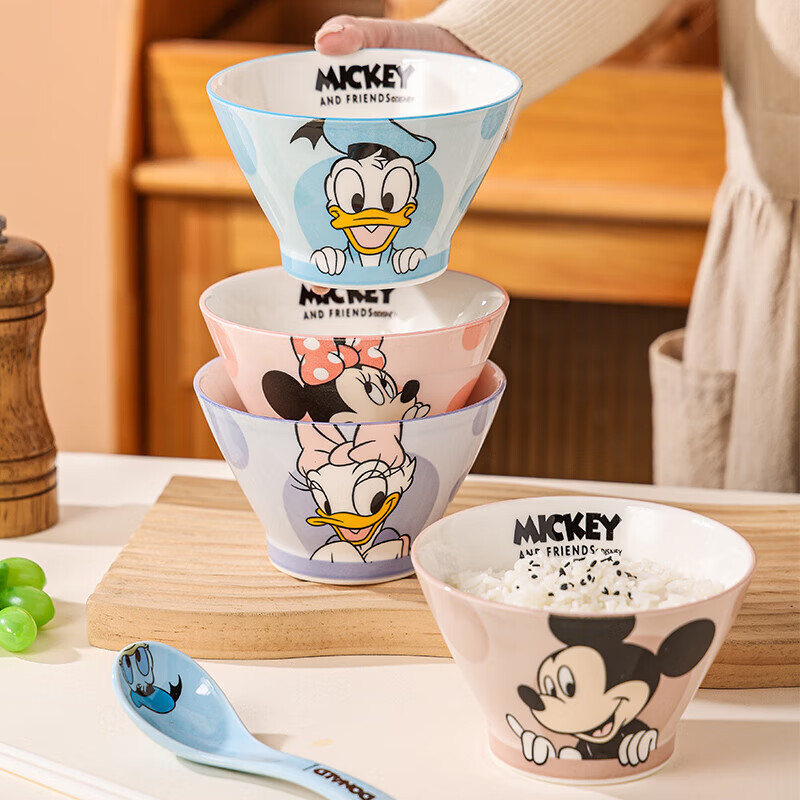 迪士尼米奇陶瓷斗笠碗釉下彩餐具仅售14.99元,高颜值特别好看的吃饭碗可爱饭碗,好评如潮。