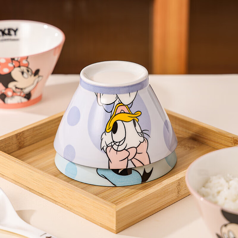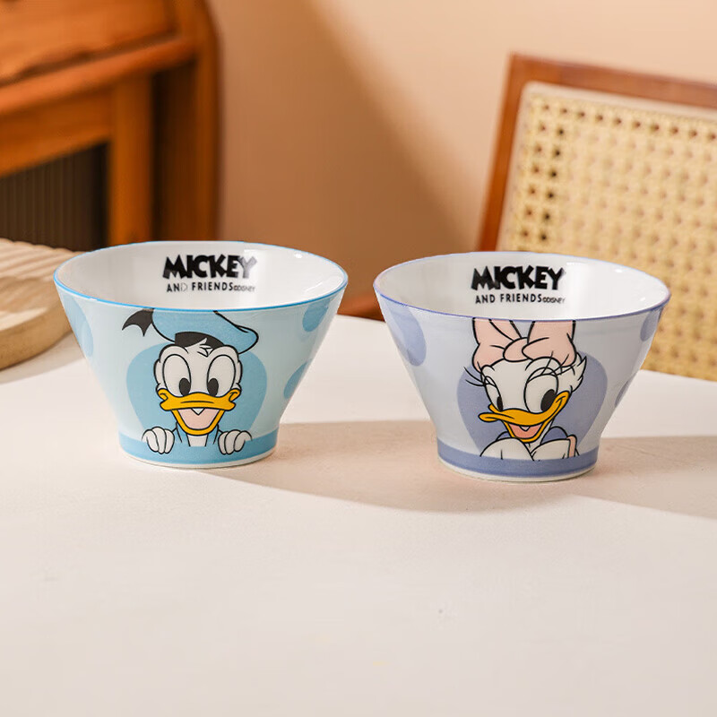 迪士尼的创意家居用品,这款【2个混装】唐老鸭黛丝5寸斗笠碗是众多粉丝喜爱的产品之一。它的设计融合了经典动画角色和日常使用的功能需求。