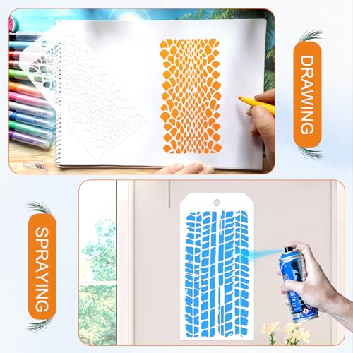 JSRQT offers a comprehensive set of stencils designed to elevate your art and craft projects with ease and versatility. These durable templates allow for intricate designs on any smooth surface, making them ideal for home decor, DIY enthusiasts, and scrapbooking.