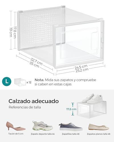 Stay organized and clutter-free with the SONGMICS Transparent Shoe Storage Boxes. Designed to hold up to 46 sizes in 18 clear units, these boxes are perfect for anyone looking to declutter their shoe collection and maintain a neat living space.