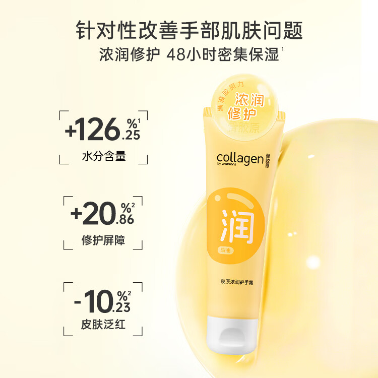 屈臣氏(Watsons)的这款骨胶原护手霜,以80g的容量带来了细腻滋养的手部护理体验。特别适合需要经常洗手的朋友使用,能够有效滋润保湿,呵护双手。
